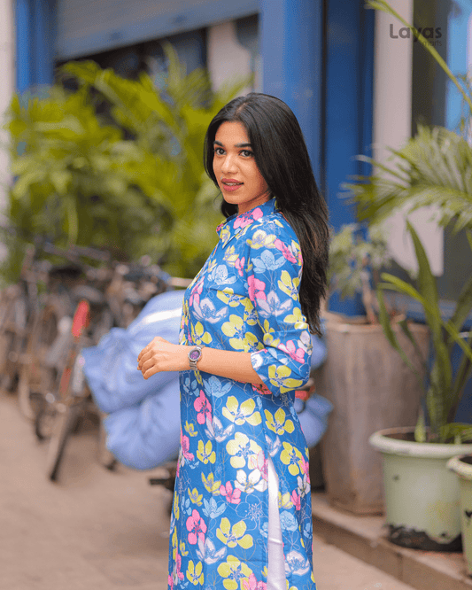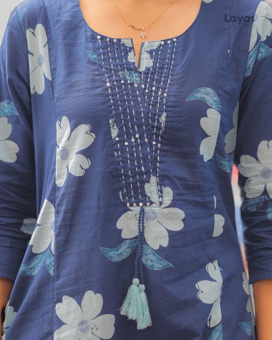 Blue Multi-Color Floral Cotton Kurta – Stylish Everyday Wear