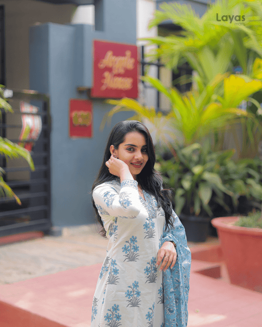 Aarvika Sky Bloom Anarkali Cotton Set – by Layas Marts