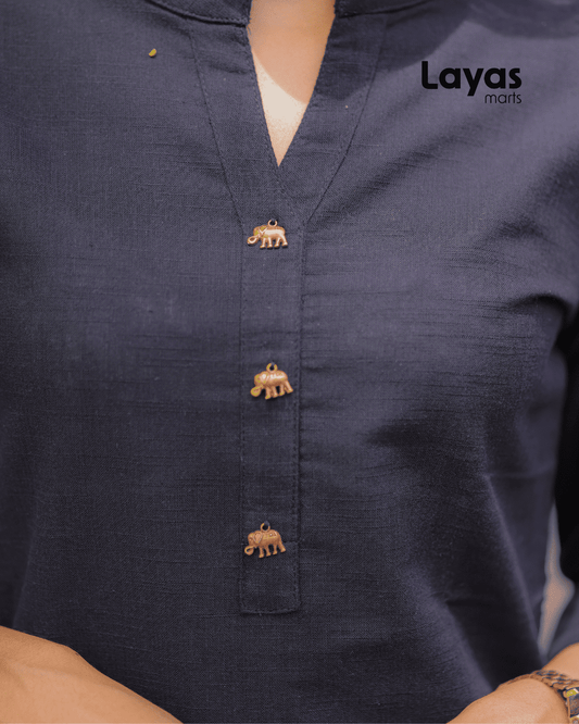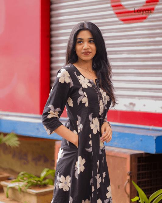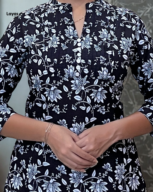 Elegant Black Floral Cotton Short Kurta – Layas Marts