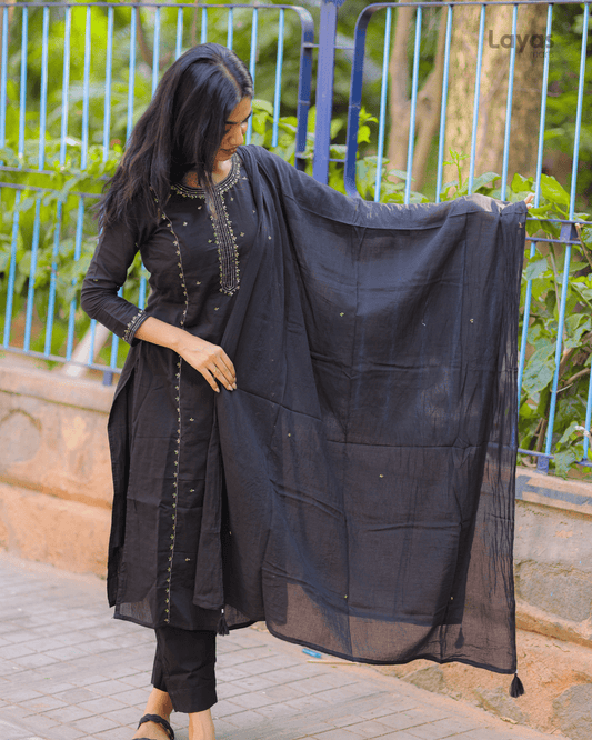 Black Embroidered Mulmul Cotton Suit Set – Layas Marts