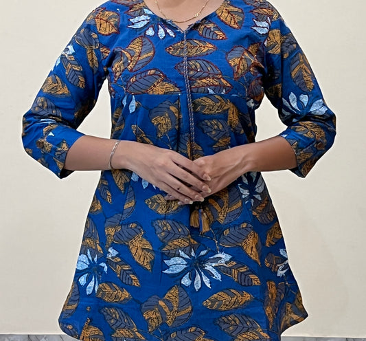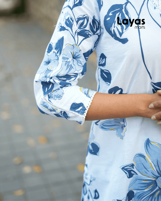 Blue Cotton Printed Tunic with White Embroidered Pants – Layas Marts