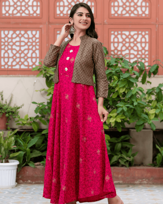 Floral Anarkali Kurta with Jacket – Layas Marts