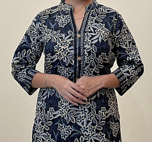 Neelaya Blue Handblock style Cotton Short Kurta by Layas Marts