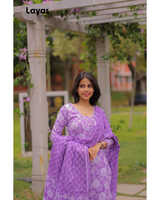 Lavender Cotton Handblock Kurta Set – Layas Marts