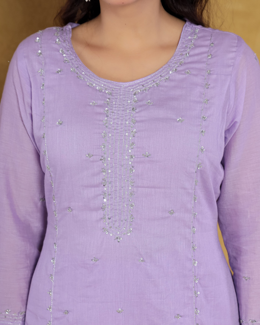 Lavender Embroidered Mulmul Cotton Suit Set – Layas Marts