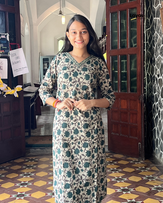 Light Green Floral Cotton Kurta Set – Layas Marts