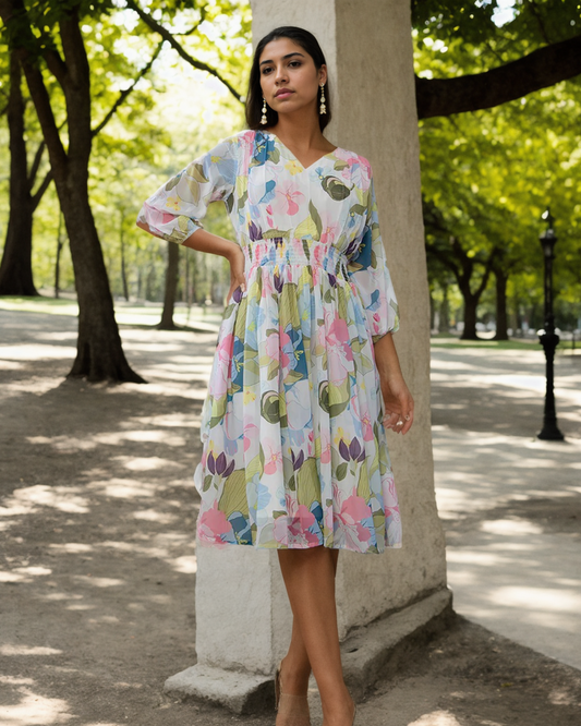 Multicolor Floral Georgette Fit & Flare Dress – Layas Marts
