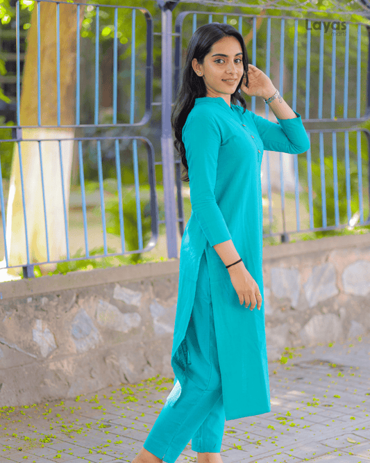 Teal Green Solid Cotton Kurta Pant Set – Layas Marts