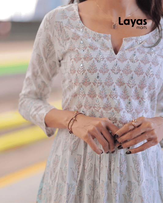 Light Green Floral Cotton Kurta Set – Layas Marts