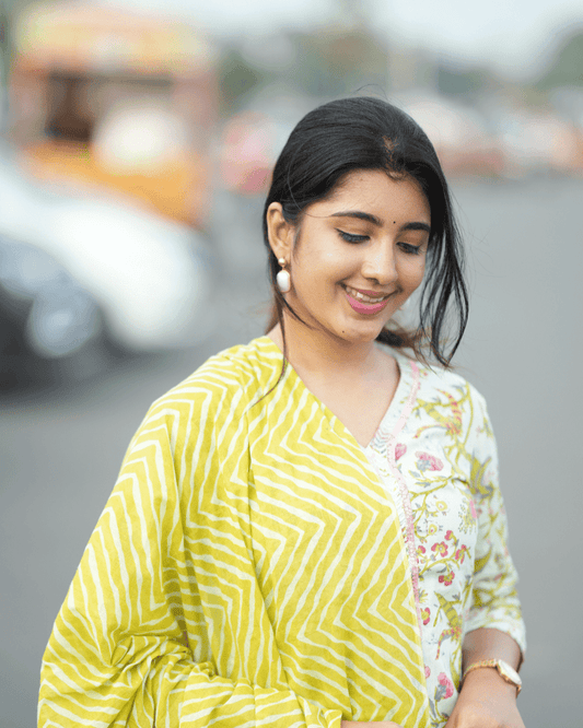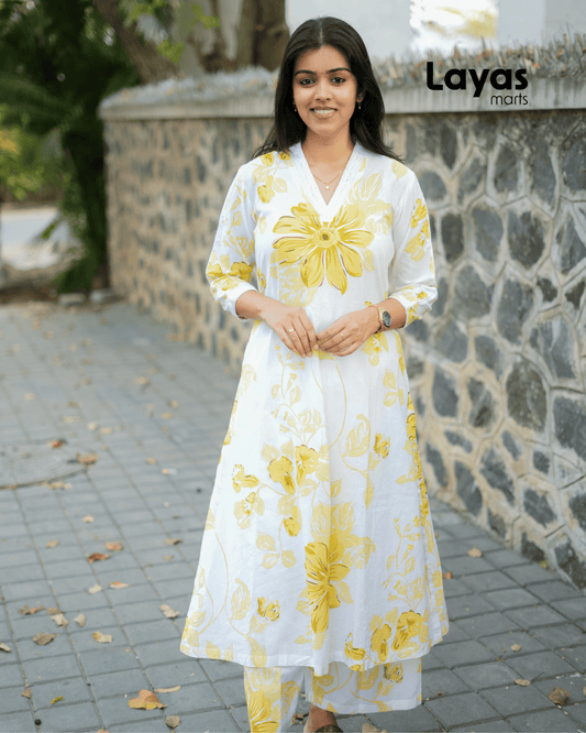 Yellow Floral Cotton Kurta Set – Layas Marts