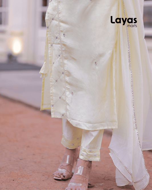 Zari Yellow Pure Silk Embroidered Kurta Set with Pants & Dupatta