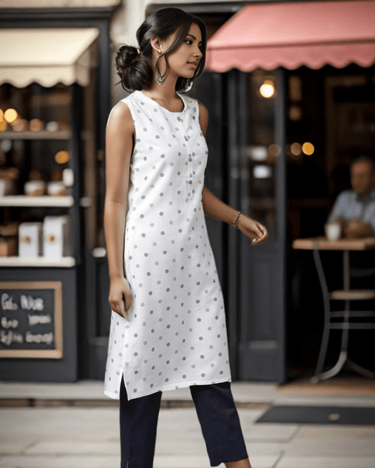 White Floral Sleeveless Cotton Dress | A-Line Casual Summer Dress