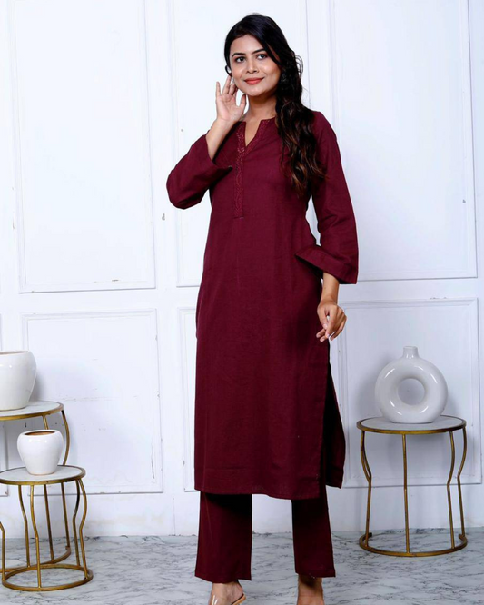 Maroon Cotton Embroidered Kurta Set – Layas Marts