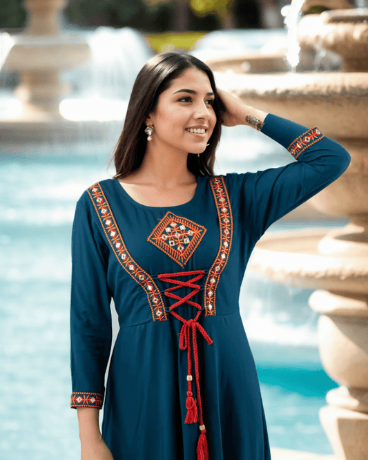 Teal Blue Embroidered Anarkali Kurta – Layas Marts
