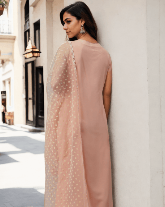 Peach Poly Crepe Solid Kurta Set – Layas Marts