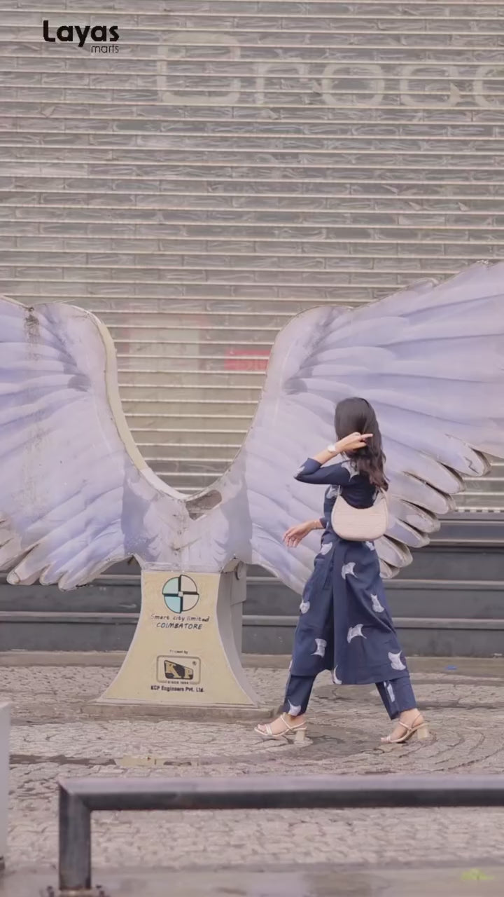 Elegant Navy blue Cotton Floral Print Kurta Pant Set
