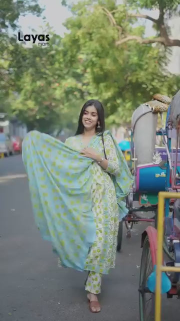 Ziya Lime Bloom Anarkali Cotton Set – by Layas Marts